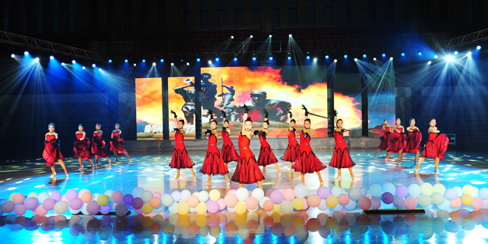演出过程中,学生表演造型优美、新颖独特,充分展示出学生爱党爱国的情怀、锐意创新的精神、朝气蓬勃的风采以及扎实的实践应用能力和较高的综合素质。《热血华章》反映了新民主主义革命时期中国共产党历经磨难,带领中华儿女在拼搏中成长,在奋斗中前进,在争取民族独立和解放的历史进程中翻开热血华章。《万疆》歌颂党带领全国人民昂首走在中国特色社会主义的光辉道路上,中国万疆一派处处平安、祥和、幸福的美丽景象。《初心》则体现了中国共产党不忘初心,牢记使命,保持永不懈怠的精神状态和一往无前的奋斗姿态。《携笔从戎》反映了保卫祖国,巩固国防,不仅是军人的义务,也是全体青年大学生的责任,号召广大学子携笔从戎,积极投身于国防建设,共同创造祖国美好明天。《党旗下的青春》则体现了因为有党的坚强领导,才有了当代年轻人在富强美好的国度中幸福、健康、快乐的青春生活。《信仰》凸显了对马克思主义的信仰,对社会主义和共产主义的信念,是共产党人的政治灵魂,有信仰,才能绘就基本底色、构筑精神高地......演出精彩纷呈,带给观众们精神的洗礼和美的享受,现场掌声和喝彩声不断。